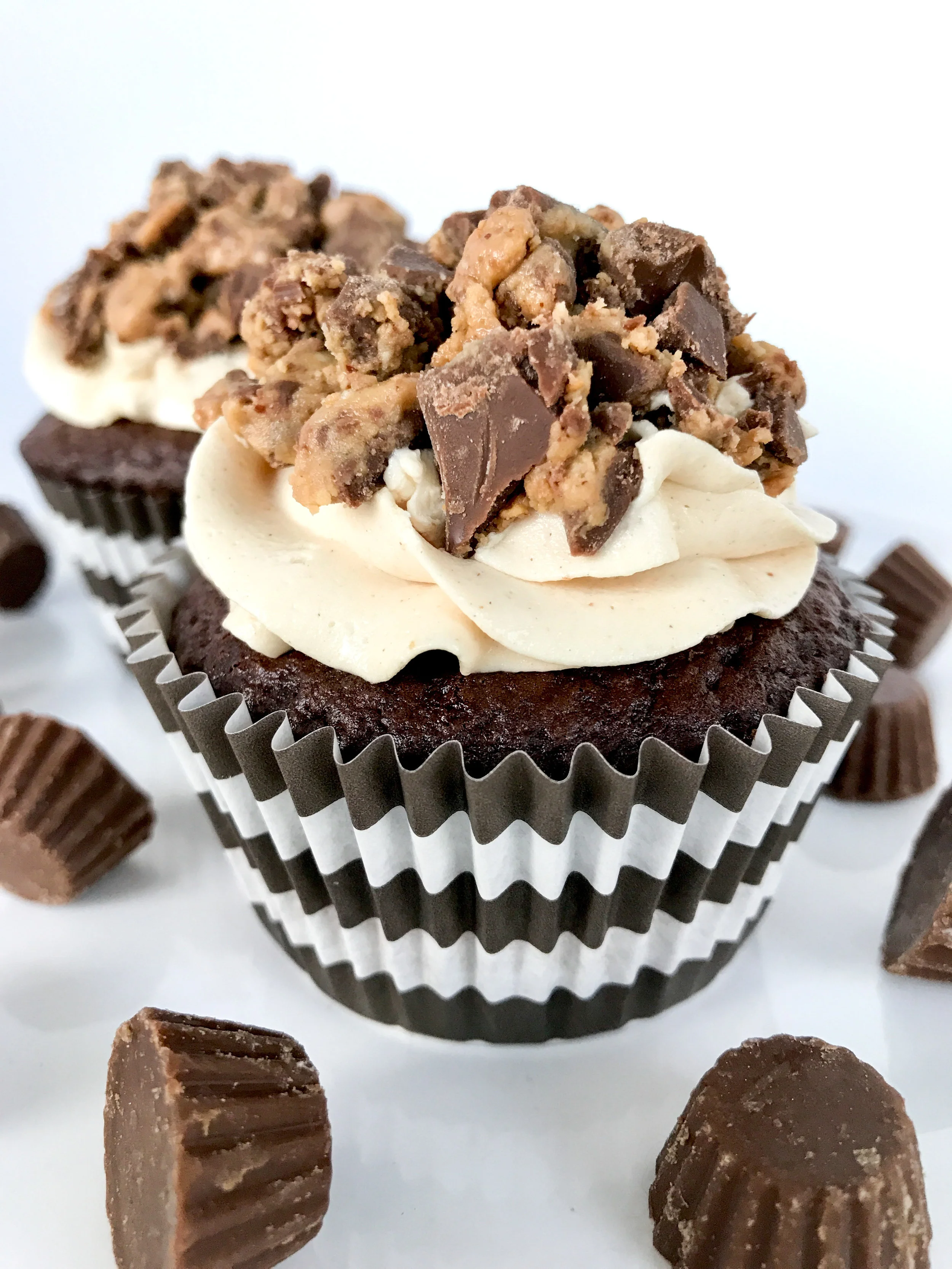 These cupcakes are, without a doubt, my most frequently requested treats. The peanut butter buttercream frosting is so ridiculously smooth that most people forget there's a little Reese's peanut butter cup on top.